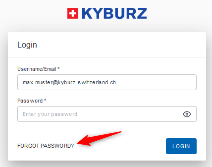 Um das Passwort zurückzusetzten, drücken Sie beim Login-Bildschirm auf "Forgot Passwort"
